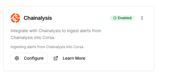 The Chainalysis integration connects your Chainalysis account directly to the Corsa platform. All Know Your Transaction (KYT) alerts are automatically synced from Chainalysis into your Corsa dashboard — and any updates your team makes in Corsa (such as status changes, notes, or resolutions) are instantly pushed back to Chainalysis.