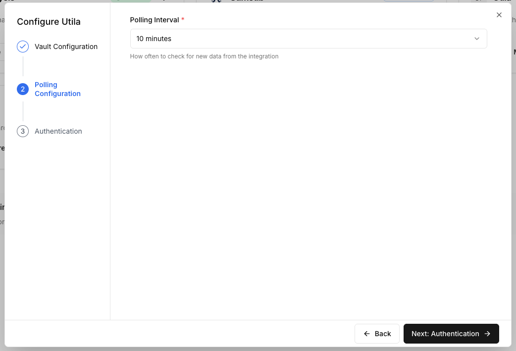 Insert the polling configuration (how often do you want to poll updated data from Utila)